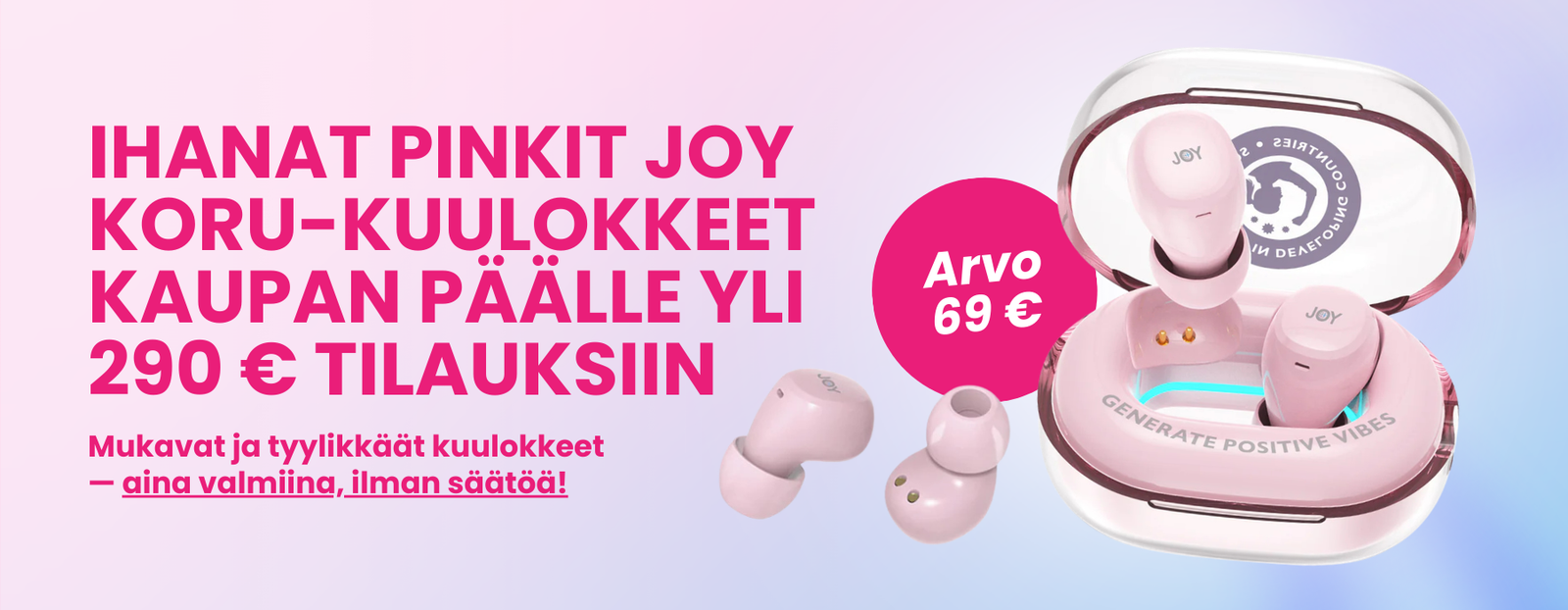 Ihanat JOY KORU-kuulokkeet kaupan päälle 290€ tilauksiin